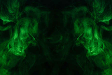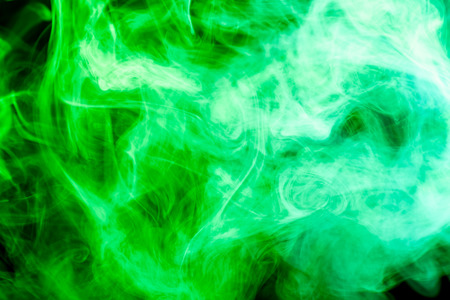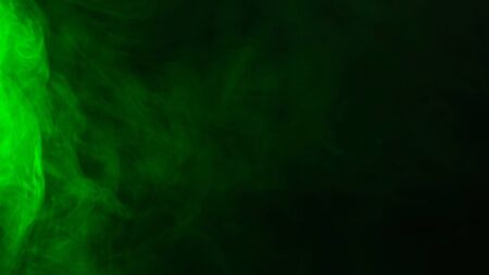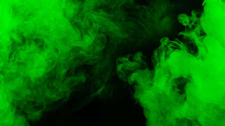 Colorful green smoke on a black isolated background. Background from the smoke of vape