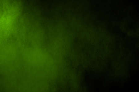 The movement of abstract dust explosion frozen green on black background. Stop the movement of powdered green on black background. Explosive powder green on black background.