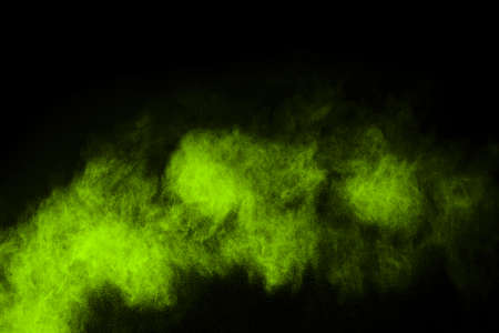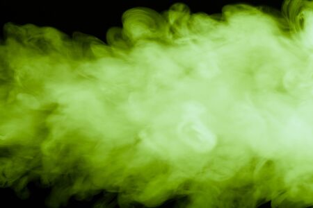 Green and black cloud of smoke of black isolated background. Background from the smoke of vape