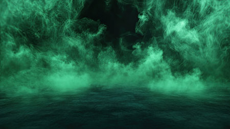 Toxic green smoke on a dark ground, creating a mysterious and dramatic background for eerie scenes
