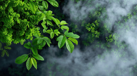 A captivating image showcasing lush green foliage with soft mist enveloping a vibrant forest, creating a peaceful and serene atmosphere for nature lovers.
