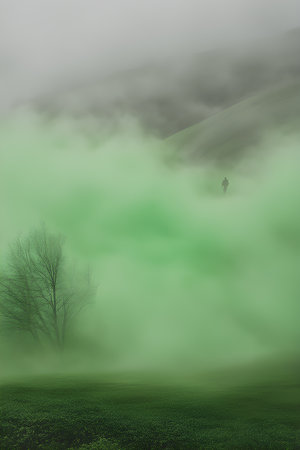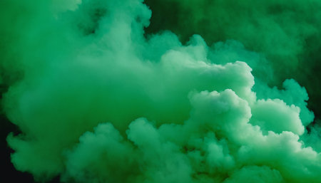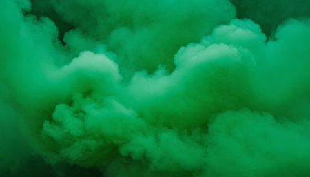 A green smoke cloud is floating in the air. The smoke is thick and dense, creating a sense of heaviness and suffocation. The color green is often associated with nature and growth, but in this case