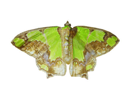 Green butterfly isolated on white. Beautiful malachite emerald moth Daphnis nerii macro, close up, collection butterflies, sphingidae, hawkmoth