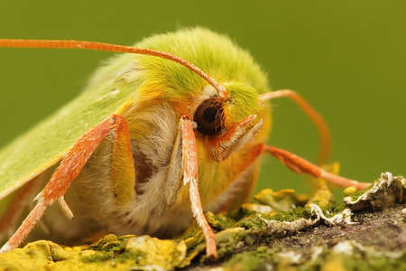 Facial closeup of the emerald green silver-lines moth, Pseudoips prasinana