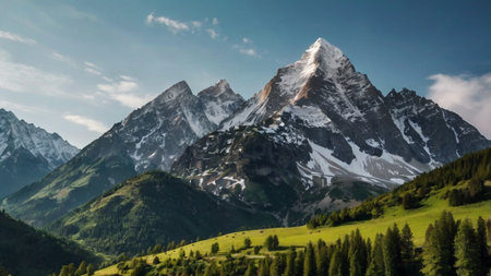 Beautiful alpine landscape with snow-capped mountain peaks.