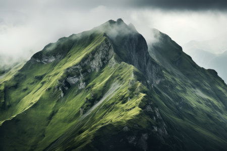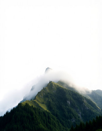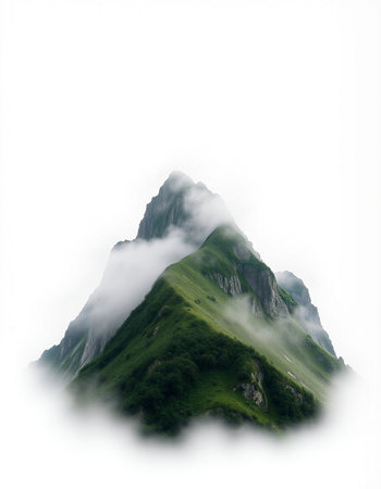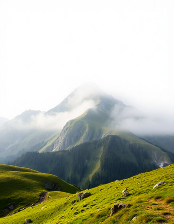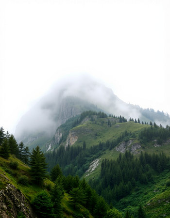 Misty mountains shrouded in fog, creating a serene and mysterious atmosphere.
