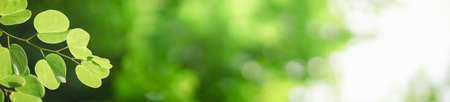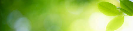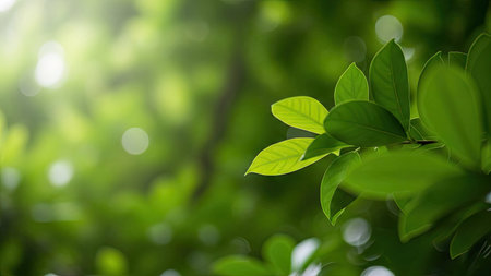 Fresh green leaves in sunlight for nature banner and cover background with copy space.