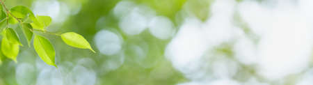 Fresh and green leaves green bokeh on nature abstract blur background green bokeh from tree.Mock up for display. montage of product,Banner or header for advertise on social media,Spring and Summer.