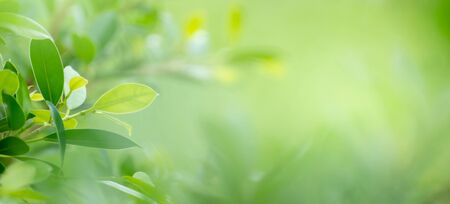 Blurred Green leaves on green background with soft focus and copy space, eco banner