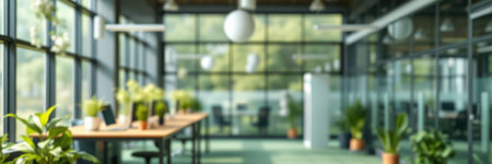 A modern office space filled with natural light and lush greenery creates a calming and productive work environment. This layout inspires creativity and collaboration.