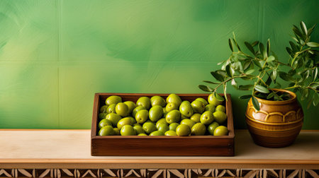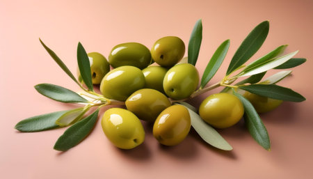 AI Generated. Green background with olive branches and olives