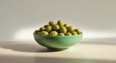 AI Generated. A green bowl filled with green olives sitting on top of a table