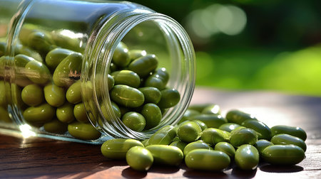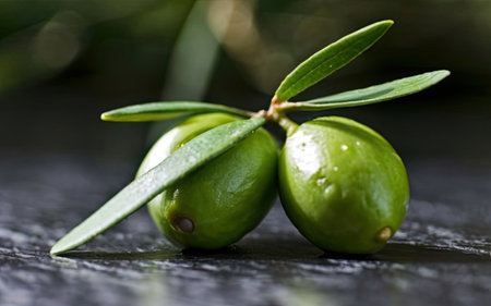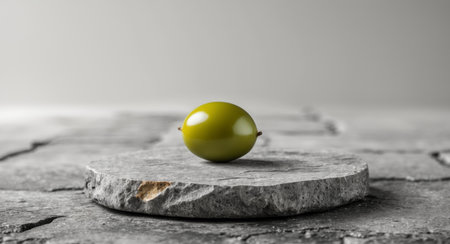 AI Generated. A green olive sitting on top of a stone floor