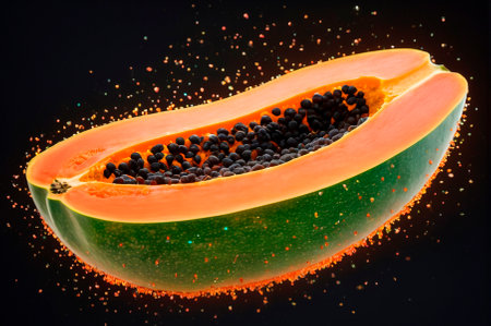 Close-Up of Fresh Papaya with Seeds on Black Background. Generative AI.