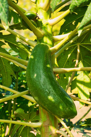 Papaya fruit on papaya tree in the garden, stock photo