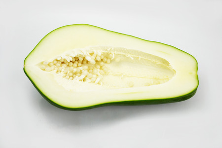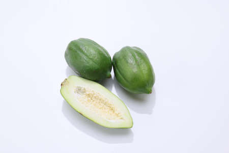 Green papaya on white background.