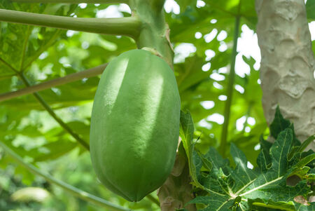 green papaya, fresh papaya on the tree. Planted in the garden in the house.