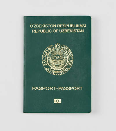 Uzbekistan passport on a white background, isolated, top view