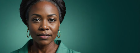A 50S Adult African American Woman Isolated On A Jade Background With Copy Space. Generative AI