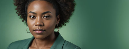 Portrait of a beautiful young african american woman against green background