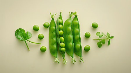 AI Generated. Fresh green peas and leaves arranged on a light background