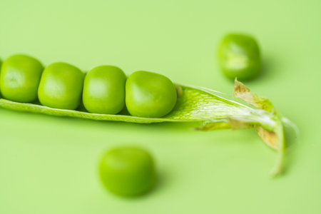 Image photo of peas taken on a light pastel green background