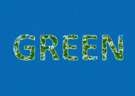 Green word in the forest. Conceptual image for environment conservation.