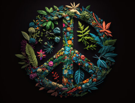 Peace symbol made by floral elements created with Generative AI technology