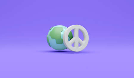 3D Rendering of globe icon and peace sign on background concept of no war stop fighting save the world. 3D Render illustration cartoon style.