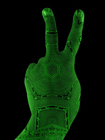 Generative AI Image of Woman Hand with Two Fingers Symbolize Peace on Green Background