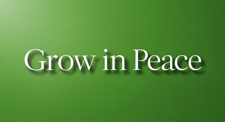 Glossy green background with the word Grow In Peace, 3d render