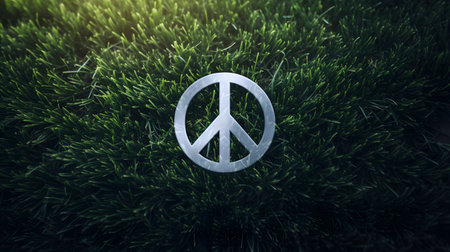 White Peace Symbol Tilted Right on Vibrant Green Grass