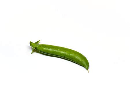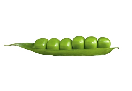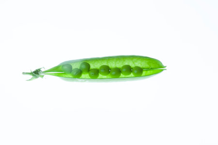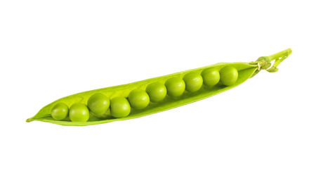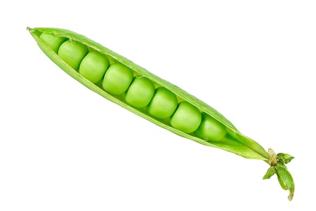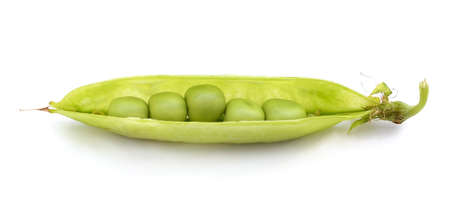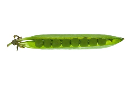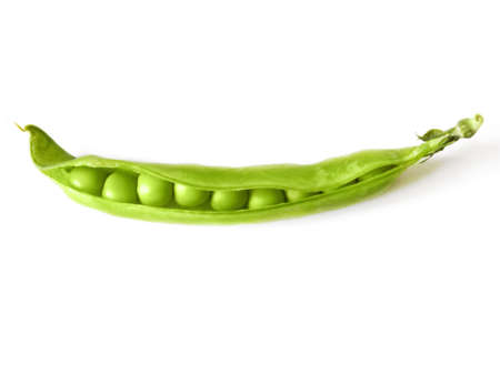 One pod of green peas isolated on a white background.