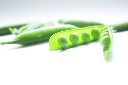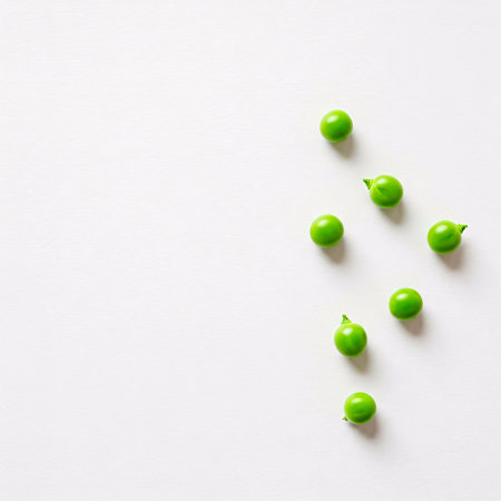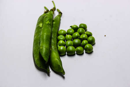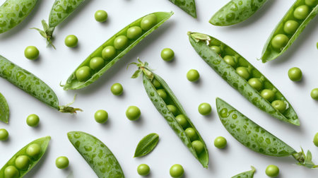 Aesthetic and visually appealing image with green peas on a white background Ideal for use in food design or advertising High quality and detailed photograph of fresh bright peas