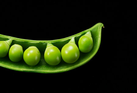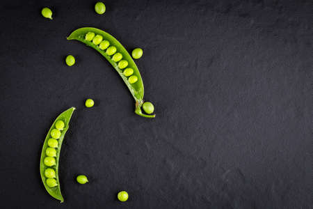 Fresh green peas on a black background. Close-up image.