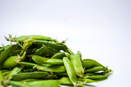Ripe green peas on a white background, after assembly on the farm