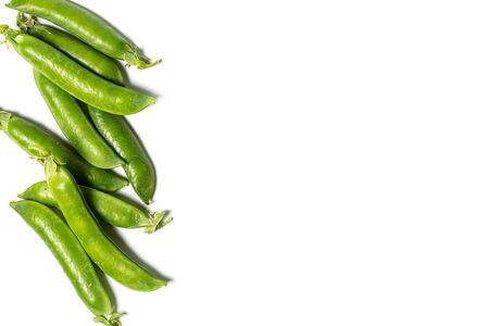 Green pea pod on white background. Isolated organic fresh leguminous.