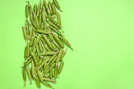 Ripe green peas on a green background