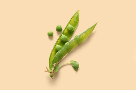 Green peas on beige background