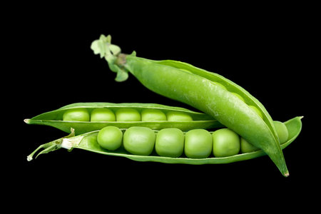 open and closed pods of green peas on isolated background