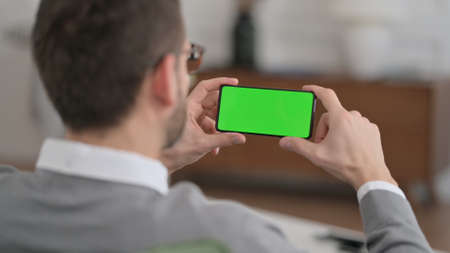 Green screen smartphones are mock up template, to be used for your best content,Business man blue shirt