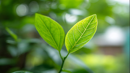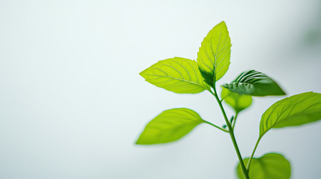 A close-up of fresh green leaves on a young plant, capturing the essence of nature and tranquility. The soft background enhances the calming effect, ideal for wellness themes.