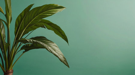 AI Generated. Lush Green Leaves on a Turquoise Background