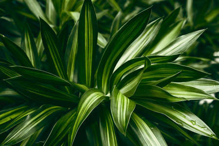 Closeup of green lush succulent leaves. Tropical leaves. Nature green background