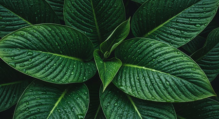 rainforest wet foliage after rain with water drops on leave moody green color nature photo