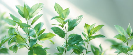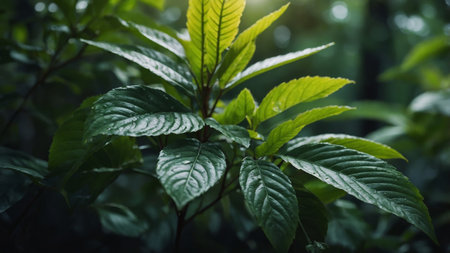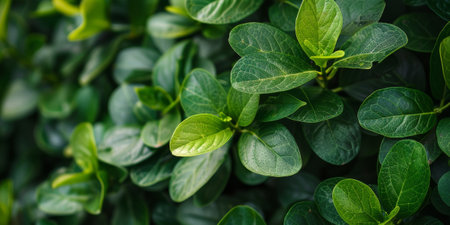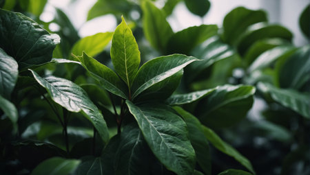 Close-up of vibrant green leaves in natural sunlight, nature and freshness concept