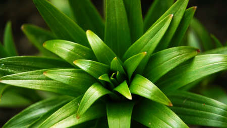 Close up of green lily plant leaf in the garden, stock photo