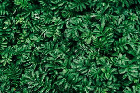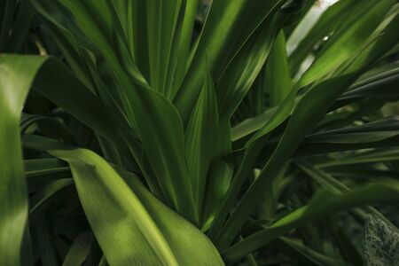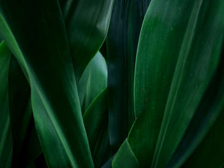 Dark green leaves pattern background, Natural background and wallpaper. Black tropical abstract green grass texture. Ornamental plant in the garden. Eco wall. Organic natural background