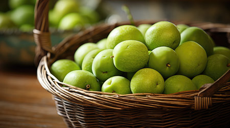 Green turkish plum can erik in basket close up