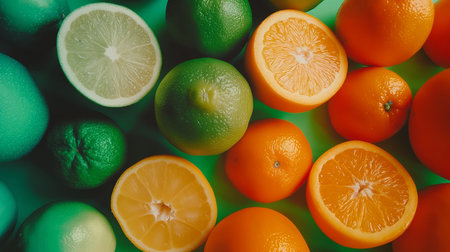 A citrus orange lemon lime grapefruit slice pattern colorful turquoise background vibrant citrus orange lemon lime grapefruit slice pattern turquoise background creates fresh healthy summer mood